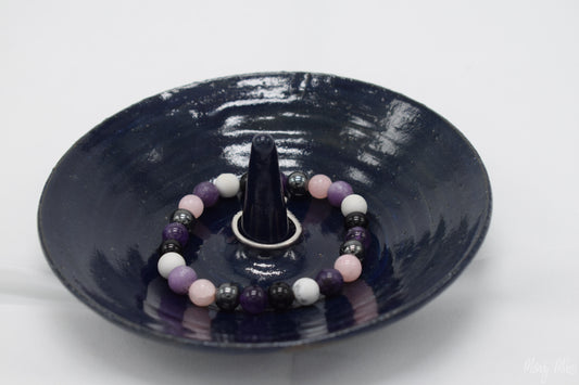 Ceramic Ring Stand Valet Jewelry Holder - Blue #011