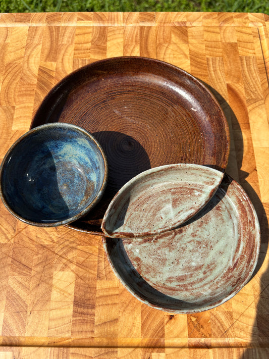 Handmade artisanal stoneware plates, bowls, cups and more displayed in high clarity ready for any kitchen where love is served or art is displayed. Commissioned works and on-site exclusives available.